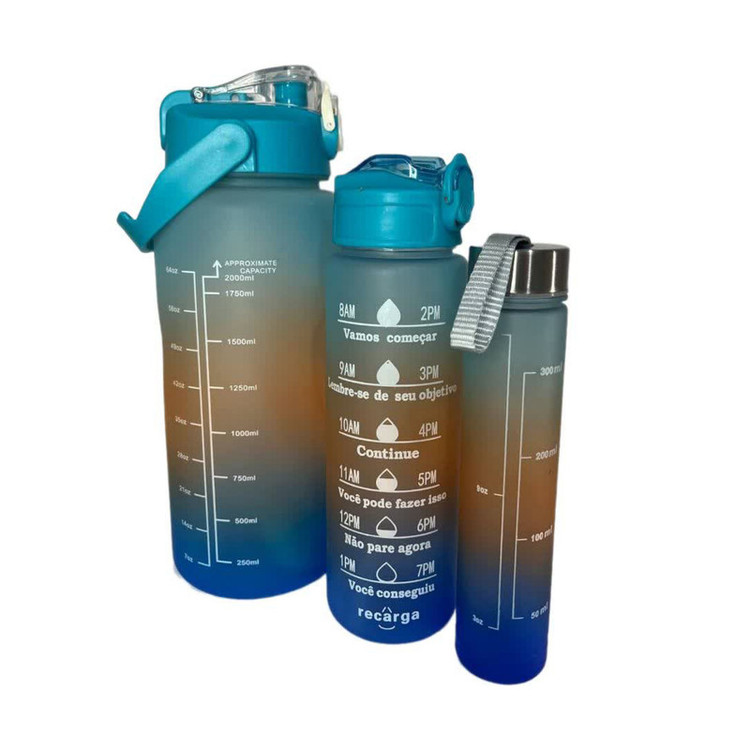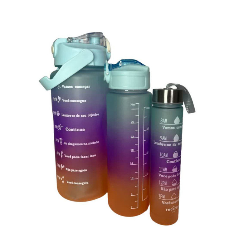 مجموعه سه عددی قمقمه : دارای سه عدد قمقمه مجزا است که جنس آن اکریلیک نشکن بوده و رنگ بدنه آن آبرنگی است 1. قمقمه سایز بزرگ : سری این قمقه دو حالته بوده که دارای سری آسان نوش و نی دار است وحجم حدود 2 لیتر دارد 2. قممقه سایز متوسط : دارای سری نی دار است و حجم آن حدود 600 میلی لیتر است 3. قممقه سایز کوچک : دارای سر پیچی است و حدود 280 میلی لیتر است